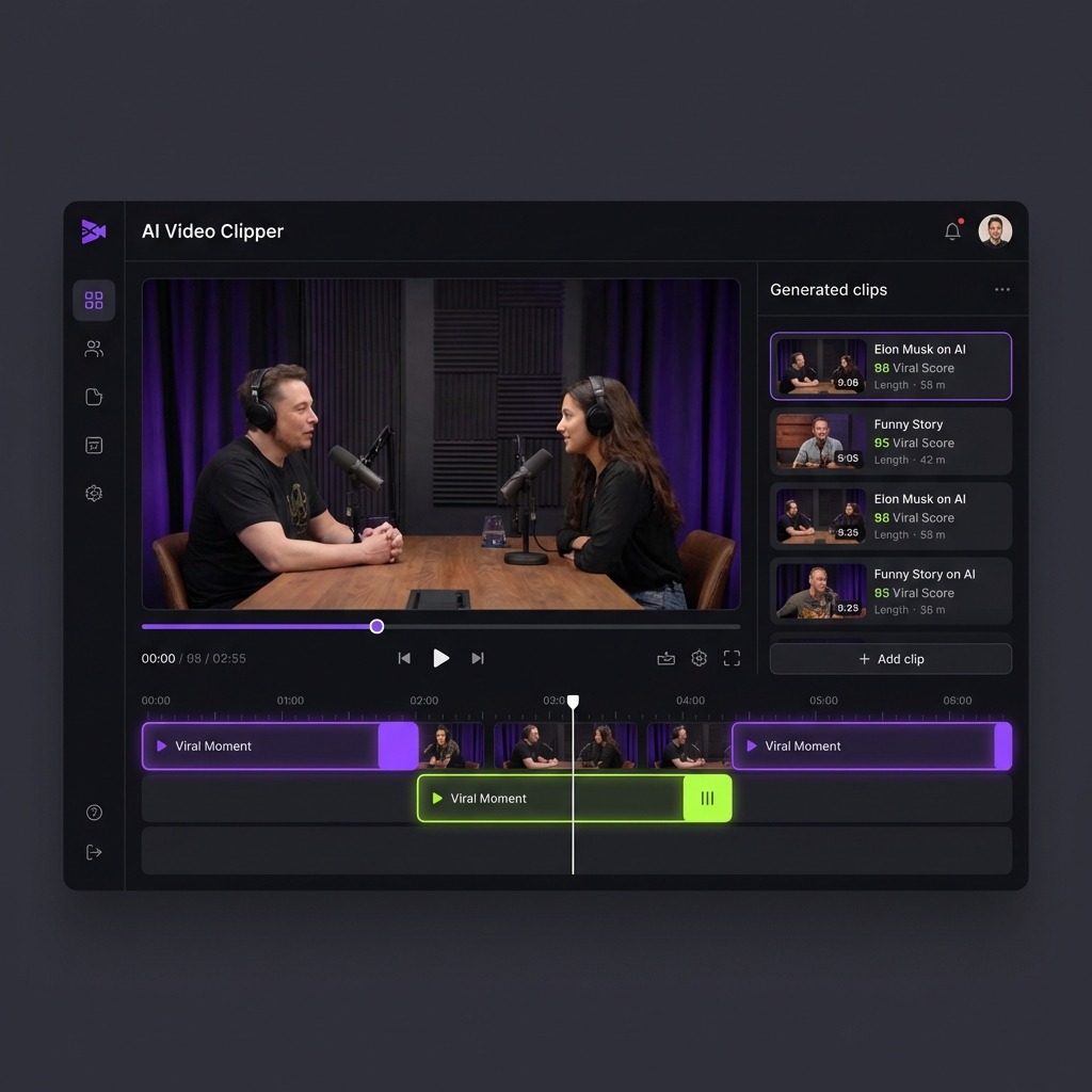 The only AI clipping model that works with any video genre — vlogs, gaming, sports, interviews, podcasts, explainer videos, and more. Find viral moments in seconds, not hours.